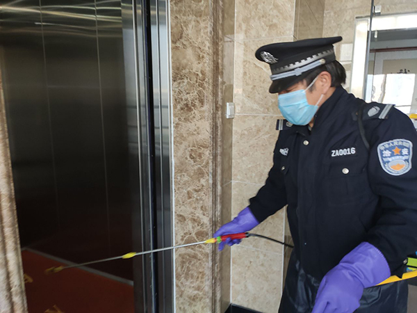 公司為在崗員工發放了口罩、噴壺、消毒酒精等防護用品,每日對各工作場所、班車、車庫、電梯、宿舍等進行定點消毒。