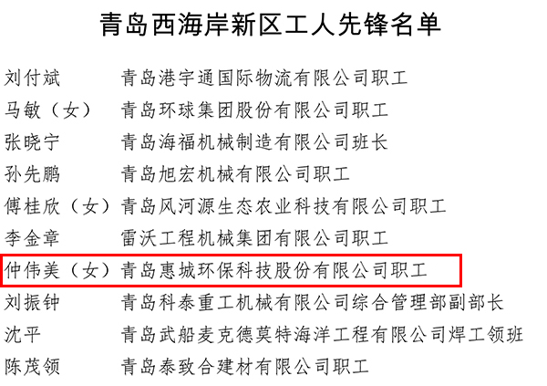 為大力弘揚(yáng)勞模精神、勞動(dòng)精神、工匠精神,激勵(lì)全區(qū)廣大職工愛崗敬業(yè),爭創(chuàng)一流,日前,青島西海岸新區(qū)總工會(huì)發(fā)起了新區(qū)工人先鋒(號)的推薦評選工作。經(jīng)過考察評比,我公司銷售團(tuán)隊(duì)和仲偉美個(gè)人喜獲 “工人先鋒號”和“工人先鋒”榮譽(yù)稱號。
